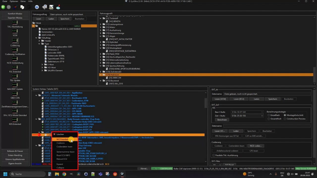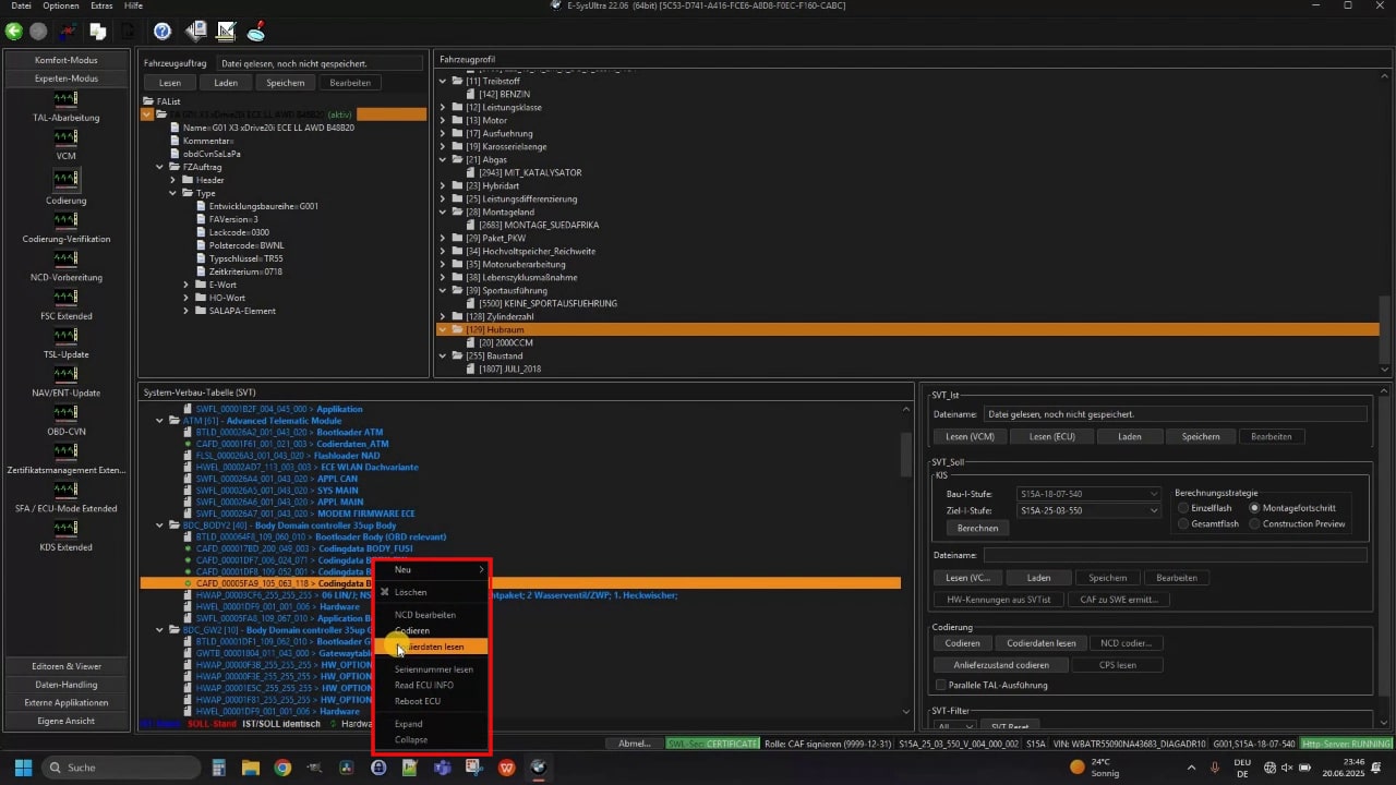 To do this, make a Right click to the Codingdata CAFD (OBD relevant) and select „Read coding data“.