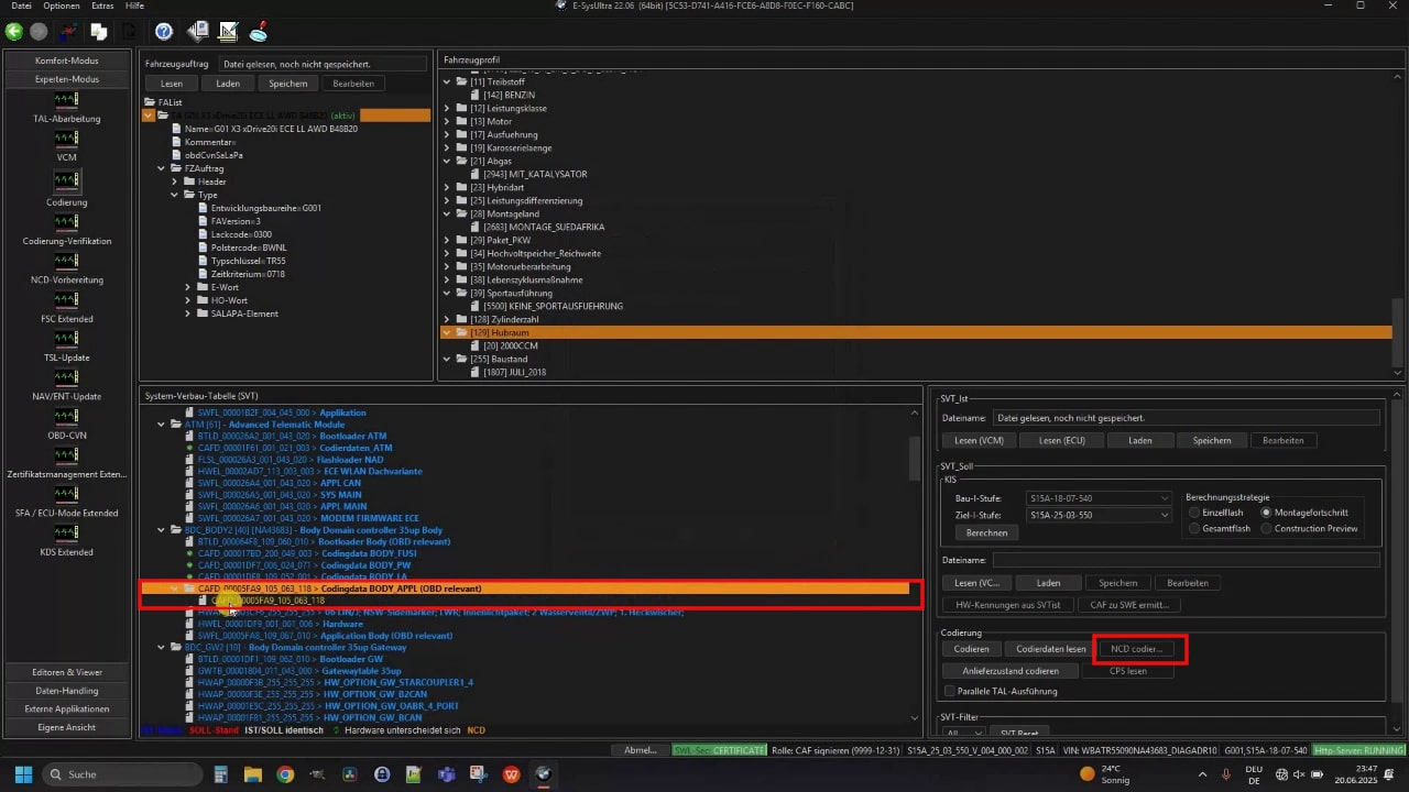 At the end save your changes, go back to the overview and code the processed CAFD as before via „NCD coding“ into the vehicle.