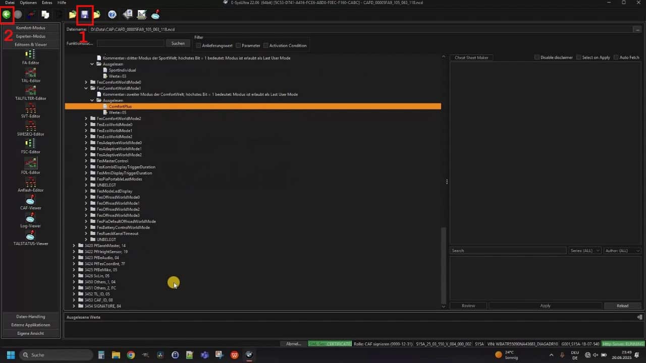 The same applies to Comfort Plus: Here you set the parameter „FESComfortWorldMode1“ from „NotComfortPlus“ to „ComfortPlus“ um.