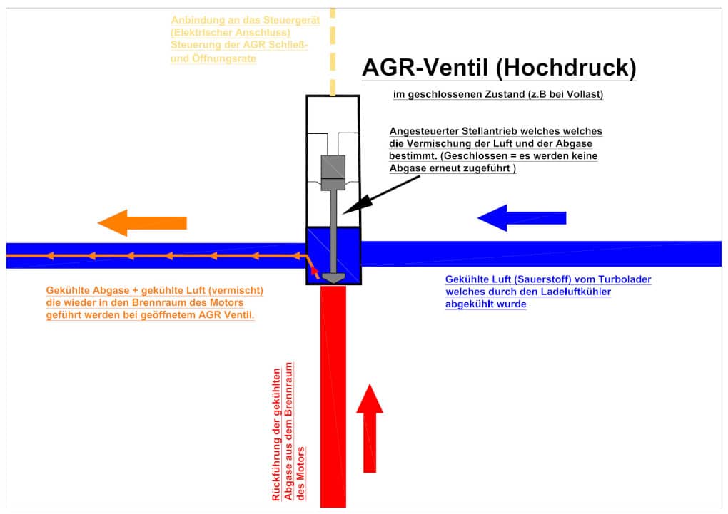 Exhaust gases from the combustion chamber are mixed with the cooled intake air from the turbocharger. The dosing is controlled by the high-pressure EGR valve.