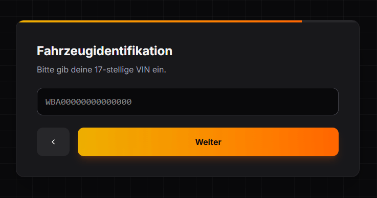 Im “Step 5” gibst du nun deine Fahrgestellnummer (VIN/FIN) ein. Achte hier darauf das du sie wirklich korrekt eintragen.