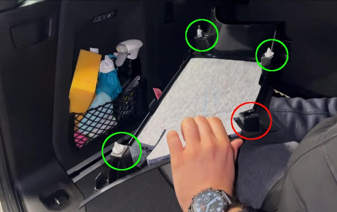 La batería del sistema de llamada de emergencia está integrada en la Unidad de Control Telemático (TCU). Esta se encuentra en la parte trasera del vehículo, por encima del revestimiento del techo, es decir, en el maletero cerca del portón trasero. Para acceder a la batería, solo tienes que desmontar algunos paneles de plástico del maletero y bajar ligeramente el revestimiento del techo. Encontrarás más información sobre ello en el capítulo más abajo.