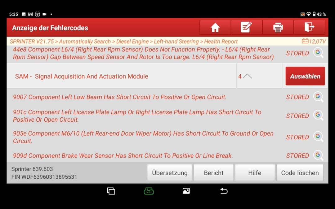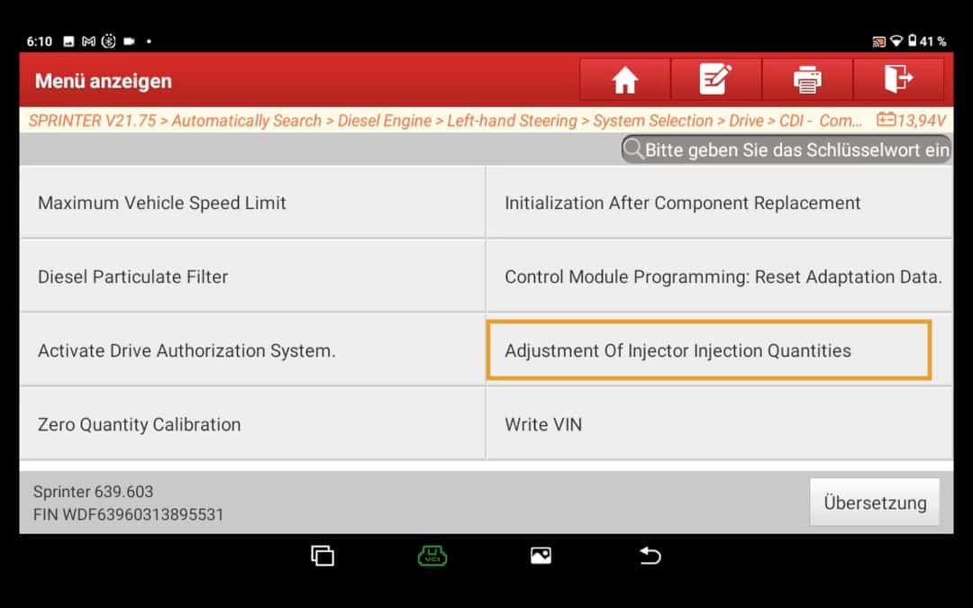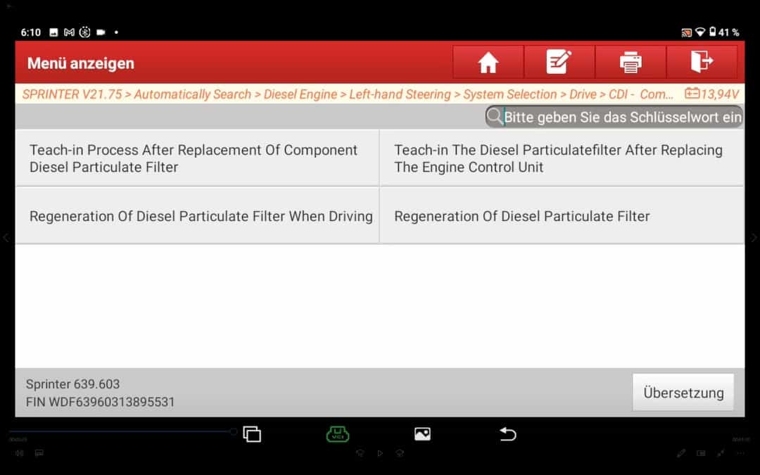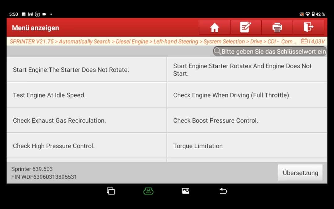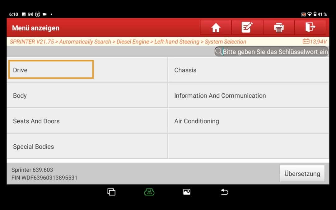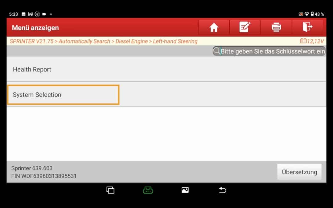 Comprar un coche comprobar clásicamente los códigos de error basta con navegar hasta el "Diagnóstico inteligente". A continuación, esta función intenta automáticamente Datos del vehículo, como el número de bastidor etc. y establecer una conexión con el vehículo.
