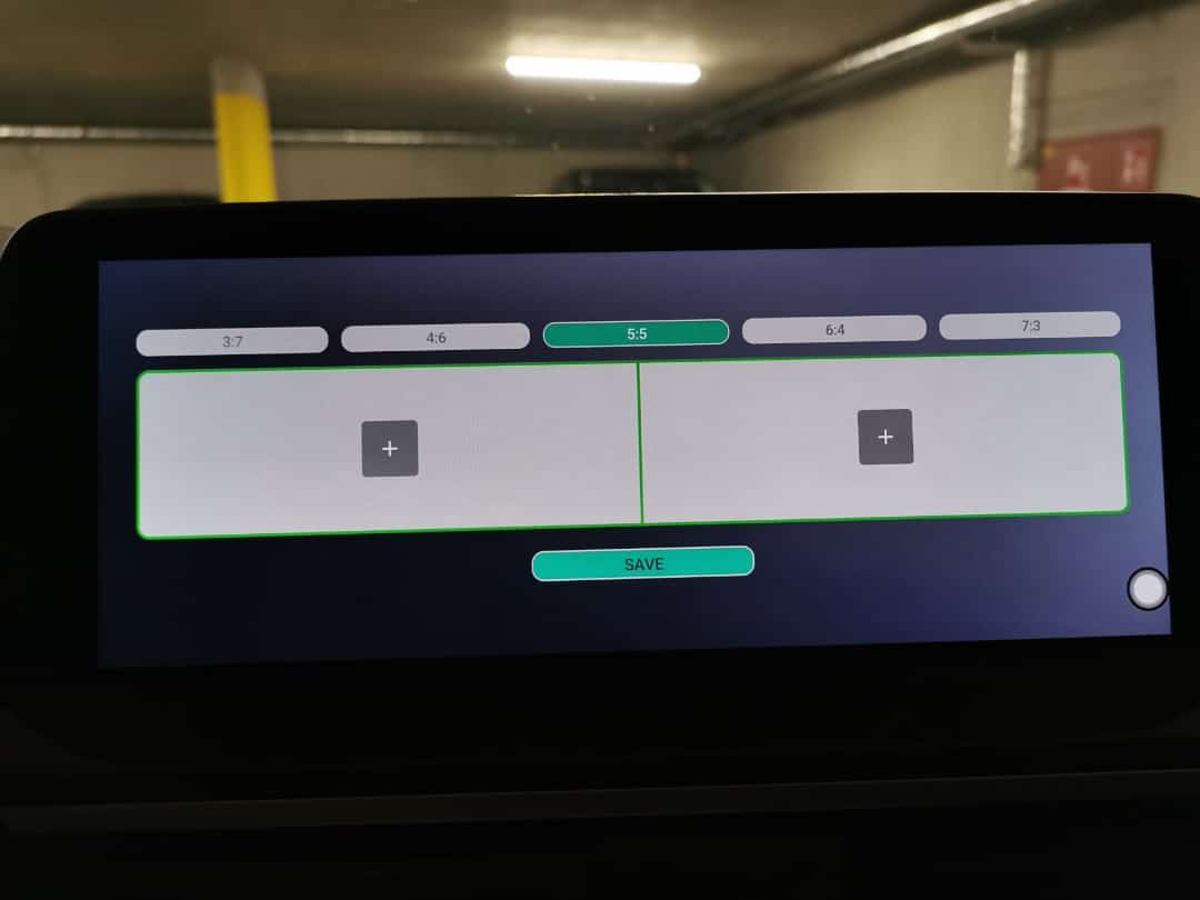 Jedną z najbardziej praktycznych funkcji jest konfigurowalny podział ekranu. W przeciwieństwie do standardowego Android Auto, gdzie zawsze widzisz tylko jedną aplikację w trybie pełnoekranowym, CARLUEX Box umożliwia dowolne dzielenie ekranu: