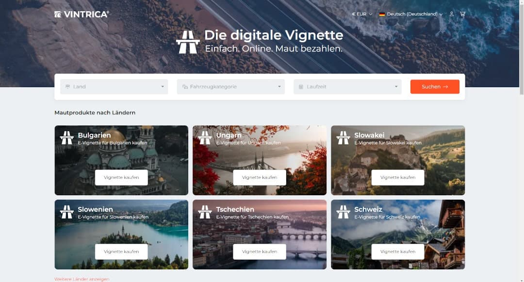 Die Webseite verkauft elektronische Autobahnvignetten (E-Vignetten) für verschiedene europäische Länder, darunter Tschechien, Slowakei, Slowenien, Ungarn und Bulgarien. In diesem Beitrag werfen wir einen Blick auf den Kaufablauf und die Vor- und Nachteile von Vintrica.